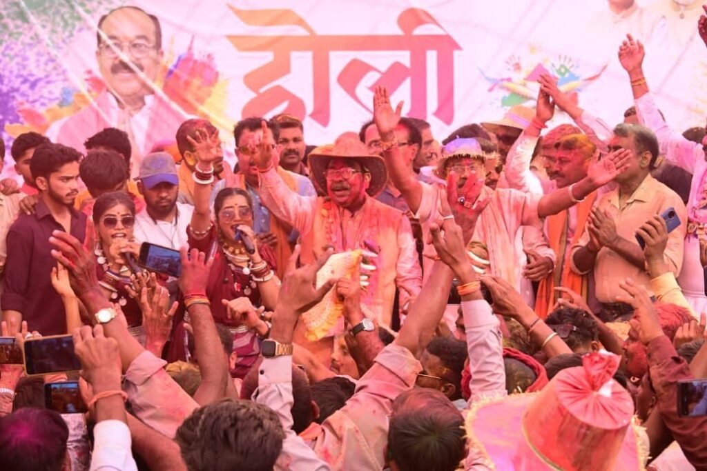 लोरमी। उप मुख्यमंत्री श्री अरुण साव ने लोरमी के मंगलम भवन में आयोजित होली मिलन समारोह में क्षेत्रवासियों के साथ हर्षोल्लास से होली मनाई। इस अवसर पर उन्होंने सभी को रंग-गुलाल लगाकर होली की बधाई एवं शुभकामनाएं दी। समारोह में परिवारजनों के साथ पूरे उत्साह से रंगों का पर्व मनाया।
