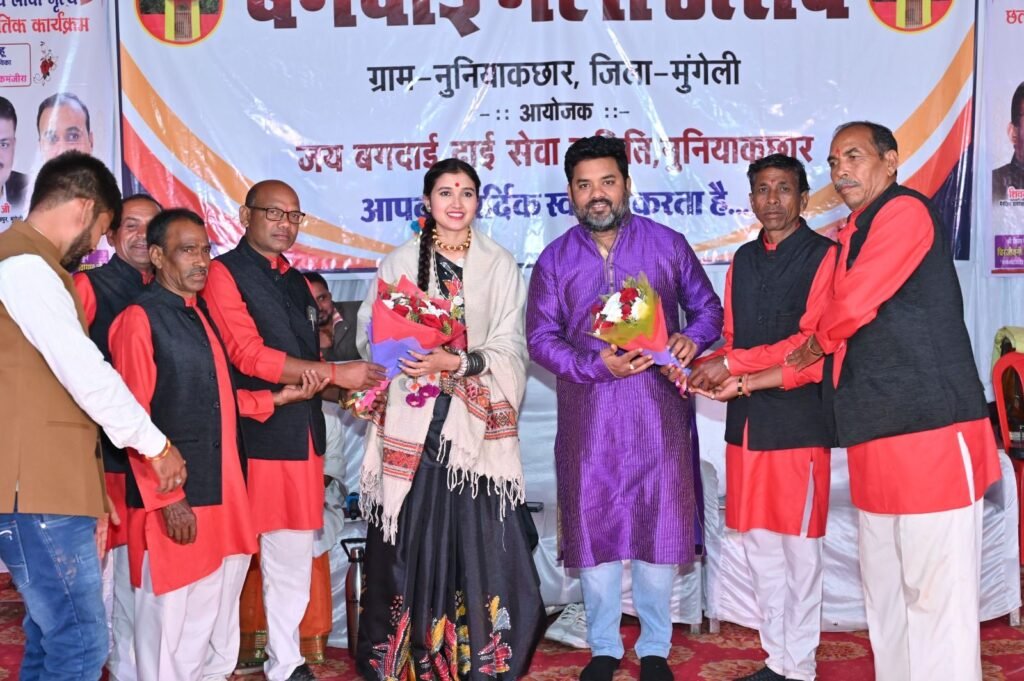 मुंगेली। जिले के ग्राम नुनियाकछार में आयोजित तीन दिवसीय भव्य माता बगदाई मेला उत्सव का समापन अत्यंत हर्षोल्लास एवं सांस्कृतिक रंगारंग कार्यक्रमों के साथ हुआ। यह मेला प्रथम दिन से लेकर अंतिम दिन तक ग्रामीणों द्वारा एक बड़े पर्व और त्यौहार के रूप में मनाया गया। पूरे गांव में उत्साह, उमंग और आस्था का वातावरण देखने को मिला। मेले में जहां ग्रामीणों को रोजगार के साधन मिले, वहीं स्कूली छात्र-छात्राओं को अपनी प्रतिभा प्रदर्शित करने का मंच भी प्राप्त हुआ। बच्चों ने सांस्कृतिक प्रस्तुतियों के माध्यम से अपनी कला का शानदार प्रदर्शन कर सभी का मन मोह लिया। मेला के अंतिम दिन मुख्य अतिथि के रूप में मुंगेली विधायक पुन्नूलाल मोहले कार्यक्रम में शामिल हुए। बगदाई मन्दिर की सौंदर्यीकरण के लिए 05 लाख रुपए एवं मेला आयोजक समिति को ₹25000 रुपए स्वेक्षानुदान राशि देने की घोषणा की। उन्होंने माता बगदाई के दर्शन कर जिलेवासियों की सुख-समृद्धि एवं खुशहाली की कामना की। कार्यक्रम को संबोधित करते हुए विधायक मोहले ने कहा कि “यह आयोजन केवल उत्सव नहीं बल्कि आस्था, भावनाओं और गांव की एकता का प्रतीक है। ऐसे आयोजनों से भाईचारा बढ़ता है और गांव की संस्कृति जीवित रहती है।” उन्होंने मेला समिति को 14 वर्षों से लगातार सफल आयोजन के लिए बधाई देते हुए कहा कि माता बगदाई के आशीर्वाद से यह मेला निरंतर सफल हो रहा है। साथ ही विधायक ने शासन की योजनाओं जैसे प्रधानमंत्री आवास योजना एवं महतारी वंदन योजना का उल्लेख करते हुए ग्रामीणों से अधिक से अधिक लाभ लेने की अपील की।