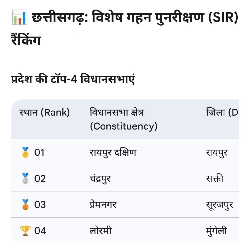 हड़ताल जैसी चुनौतीपूर्ण परिस्थितियों के बावजूद विशेष गहन पुनरीक्षण (SIR) में लोरमी विधानसभा को पूरे छत्तीसगढ़ में चौथा स्थान प्राप्त होने पर मैं अपनी पूरी निर्वाचन एवं राजस्व टीम को बधाई देता हूँ।